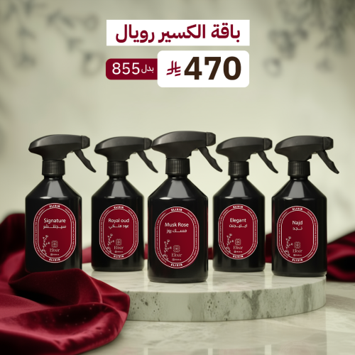 يعد بكج معطر جو الكسير رويال (حلاً متكاملاً لمن يريدون تأسيس هوية عطرية موحدة دون عناء الاختيار. يجمع البكج بين روائح متكاملة يمكن استخدامها لتقنية "الدمج الطبقي" أو لتخصيص كل غرفة برائحة متناغمة مع الغرف الأخرى. إنها مكتبة عطرية مصممة مسبقاً لضمان الذوق الرفيع والانسجام التام بين أجزاء المنزل.